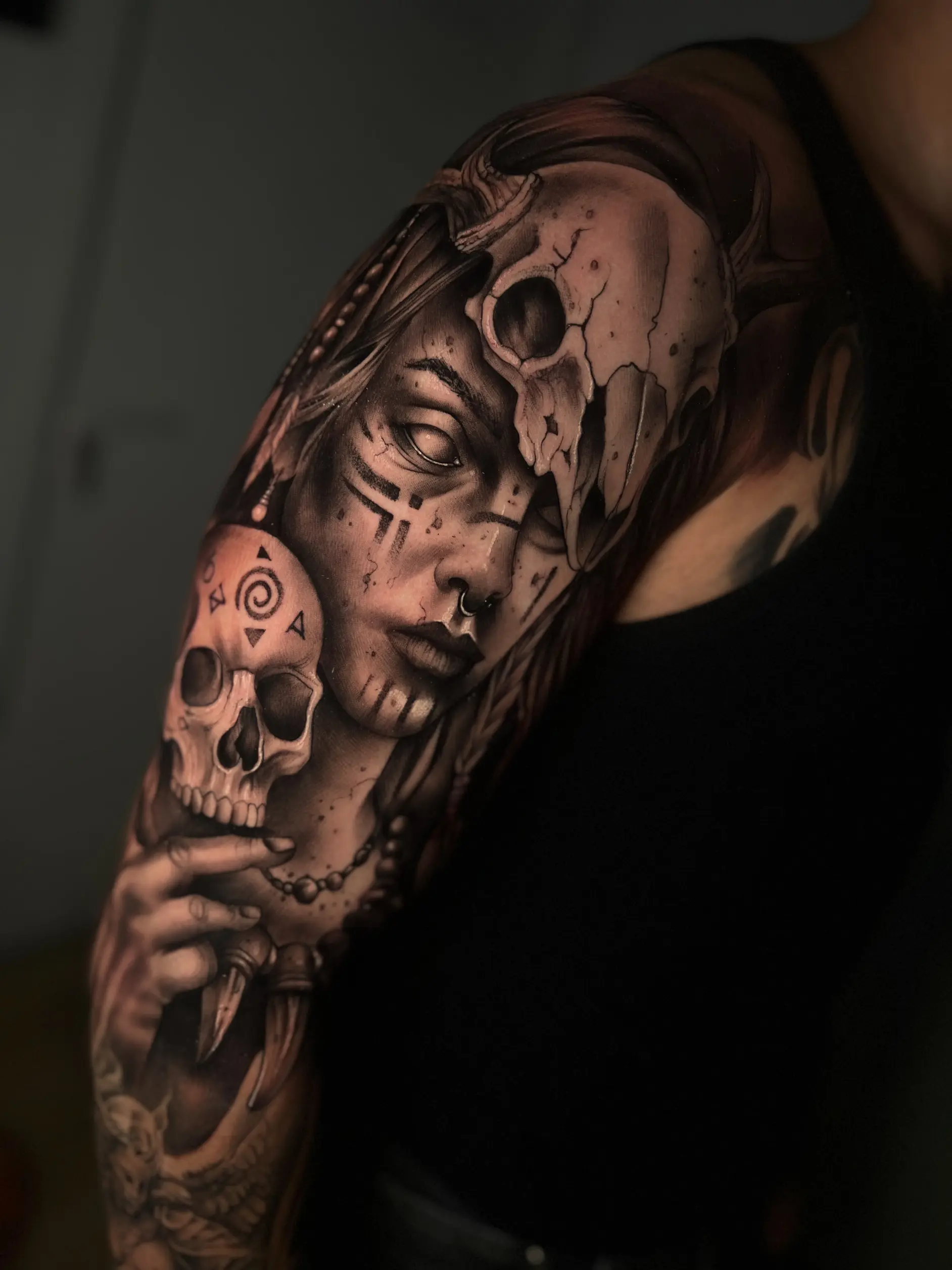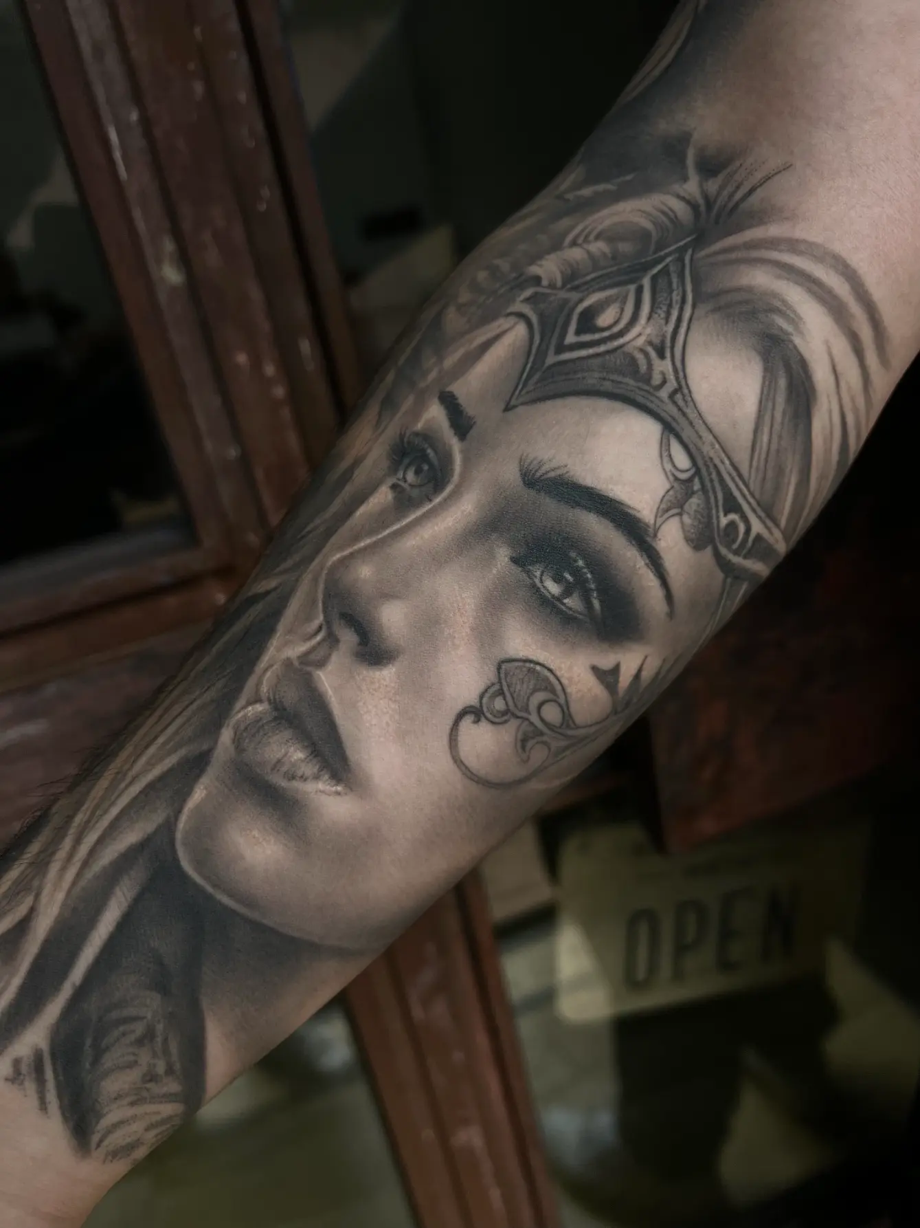 Trabajamos tanto en realismo en negro y gris como en realismo a color, adaptando cada diseño a la anatomía del cliente para que el resultado sea duradero y fiel a la idea original. Es un estilo ideal para homenajes, retratos de familiares, mascotas o imágenes con un fuerte valor emocional.